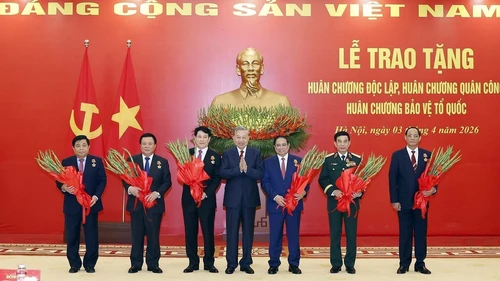 Tin tức 24hChiều 3/4/2026, tại Trụ sở Trung ương Đảng, Bộ Chính trị, Ban Bí thư đã tổ chức Lễ trao tặng Huân chương Độc lập, Huân chương Quân công, Huân chương Bảo vệ Tổ quốc cho lãnh đạo chủ chốt, lãnh đạo cấp cao của Đảng, Nhà nước; lãnh đạo các bộ, ban, ngành Trung ương.