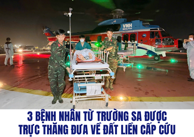 Các bác sĩ Tổ Cấp cứu đường không của Bệnh viện Quân y 175 xử lí, đảm bảo an toàn cho người bệnh trong quá trình vận chuyển về đất liền
