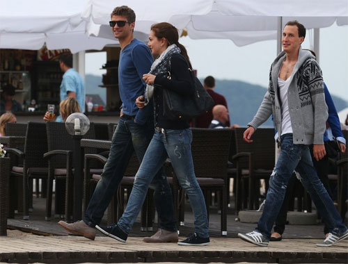 Một số cầu thủ Đức khác cũng chọn cách đi dạo để thư thái đầu óc. Podolski ra ngoài 1 mình