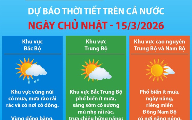Cuộc bầu cử đại biểu Quốc hội khóa XVI và đại biểu Hội đồng nhân dân (HĐND) các cấp nhiệm kỳ 2026-2031 diễn ra vào ngày Chủ nhật - 15/3/2026. Dự báo thời tiết trên cả nước vào ngày này phổ biến ít mưa, trời có nắng.