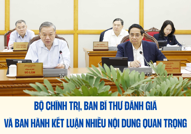 Ngày 31/10/2025, tại Trụ sở Trung ương Đảng, Bộ Chính trị, Ban Bí thư họp nghe báo cáo về tình hình, kết quả hoạt động của bộ máy hệ thống chính trị và chính quyền địa phương 2 cấp tháng 10/2025; về tổng kết công tác đại hội đảng bộ trực thuộc Trung ương nhiệm kỳ 2025 – 2030 của Ban Tổ chức Trung ương và của Văn phòng Trung ương Đảng báo cáo tổng hợp tình hình và công tác ứng phó, khắc phục hậu quả Bão số 12. Tổng Bí thư Tô Lâm chủ trì cuộc họp.
