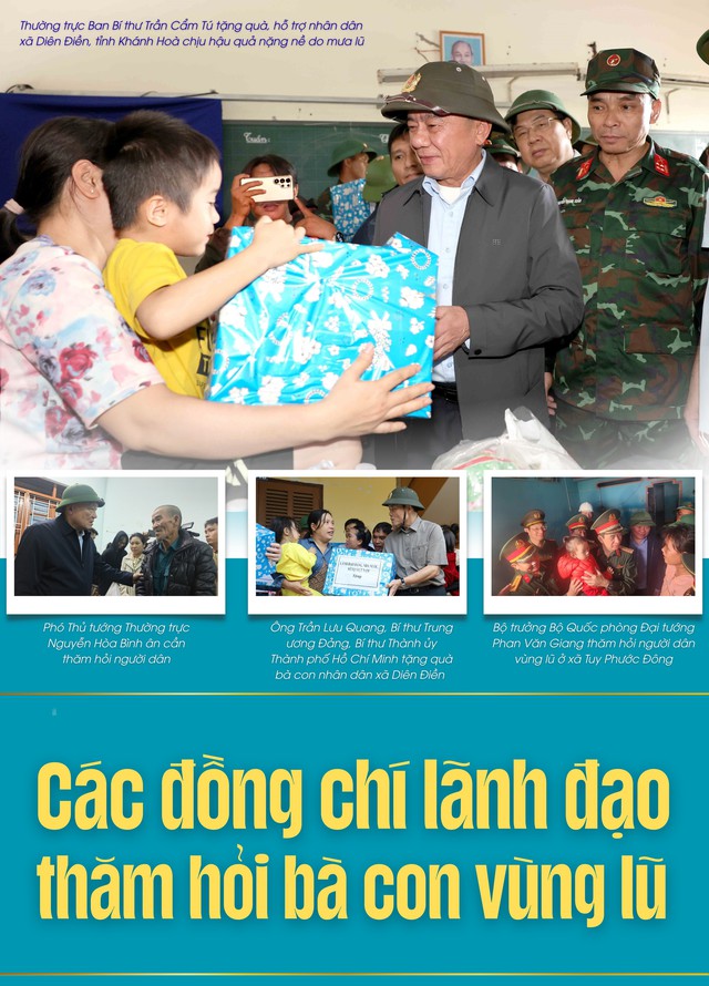 Ngày 22/11/2025, tại Khánh Hoà, đồng chí Trần Cẩm Tú, Uỷ viên Bộ Chính trị, Thường trực Ban Bí thư thăm, động viên Đảng bộ, chính quyền và nhân dân xã Diên Điền, tỉnh Khánh Hoà bị thiệt hại nặng nề do mưa lũ.