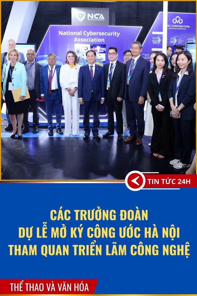 Trong khuôn khổ Lễ mở ký và Hội nghị cấp cao Công ước của Liên hợp quốc về chống tội phạm mạng (Công ước Hà Nội), chiều 25/10/2025, tại Trung tâm Hội nghị Quốc gia (Hà Nội), Phó Thủ tướng Chính phủ Bùi Thanh Sơn cùng các Trưởng đoàn tham quan Triển lãm Công nghệ, do Hiệp hội An ninh mạng quốc gia chủ trì.
