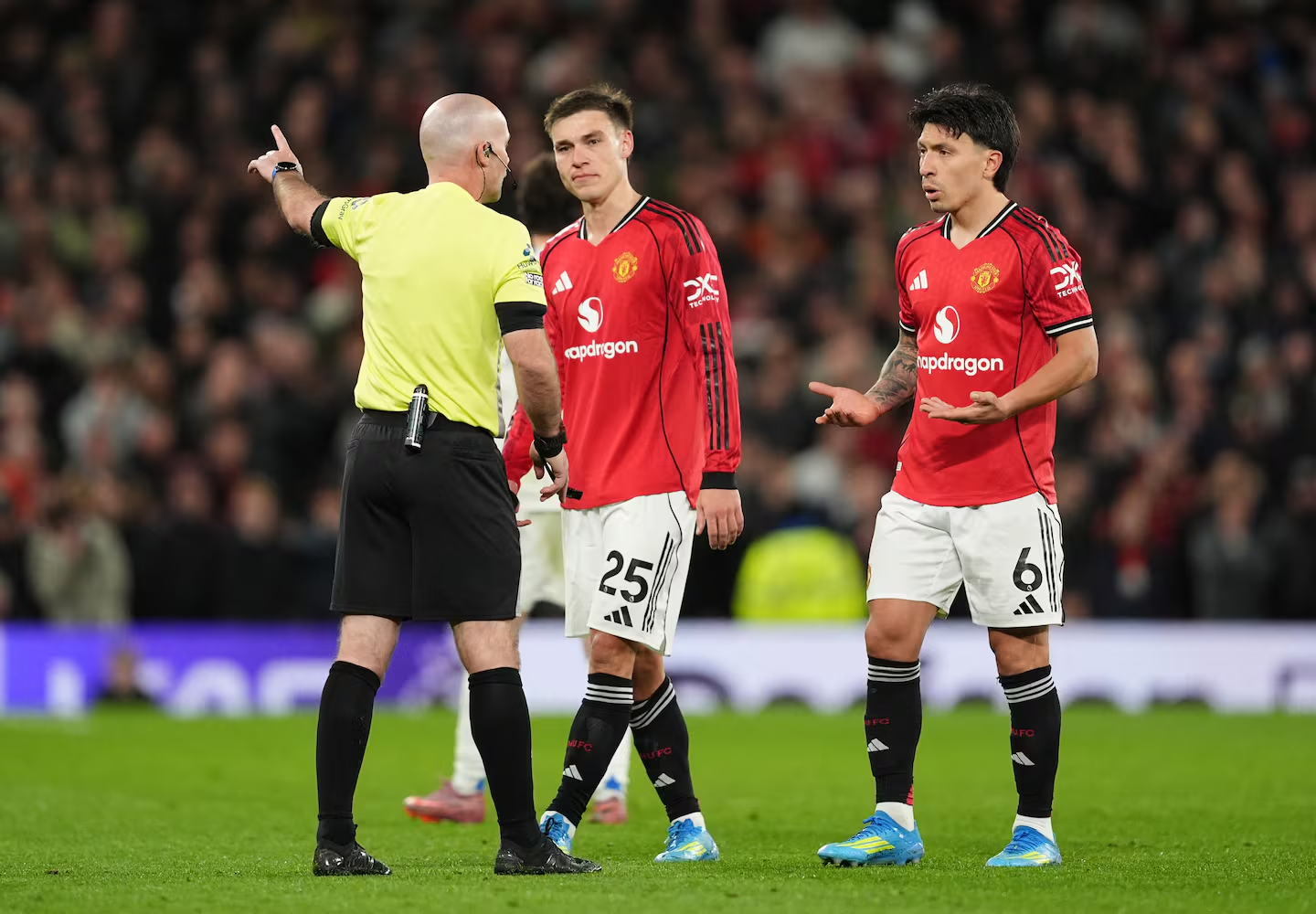 Carrick cũng đặt dấu hỏi về tính nhất quán trong công tác trọng tài, đặc biệt khi so sánh với những tình huống trước đó. Ông chỉ ra pha va chạm của Calvert-Lewin với Leny Yoro trong bàn mở tỷ số của Leeds, khi tiền đạo này dùng tay tác động vào đầu hậu vệ MU nhưng không bị thổi phạt.