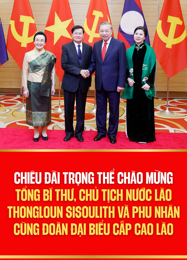 Tối 26/1, tại Thủ đô Hà Nội, Tổng Bí thư Tô Lâm và Phu nhân đã chủ trì chiêu đãi trọng thể chào mừng Tổng Bí thư, Chủ tịch nước Lào Thongloun Sisoulith và Phu nhân cùng Đoàn đại biểu cấp cao Đảng, Nhà nước Lào đang có chuyến thăm cấp Nhà nước tới Việt Nam từ ngày 26-27/1/2026.
