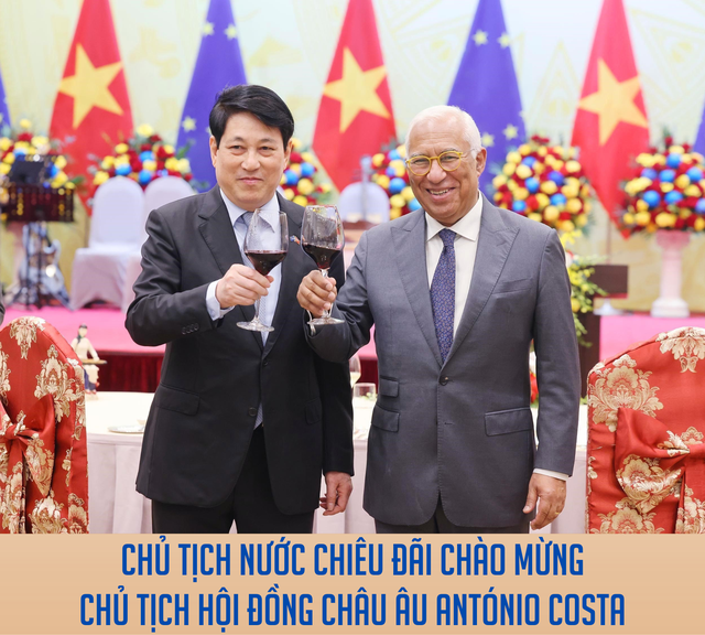 Tối 29/1, tại Trung tâm Hội nghị Quốc tế, Chủ tịch nước Lương Cường đã chủ trì chiêu đãi trọng thể Chủ tịch Hội đồng châu Âu António Costa cùng đoàn cấp cao Liên minh châu Âu (EU) đang có chuyến thăm chính thức đến Việt Nam từ ngày 28 đến 29/1/2026.