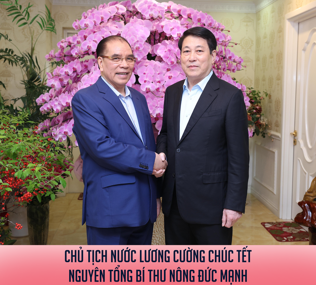 Nhân kỷ niệm 96 năm ngày thành lập Đảng Cộng sản Việt Nam (3/2/1930 – 3/2/2026) và chuẩn bị đón Tết Nguyên đán Bính Ngọ 2026, chiều 2/2, Chủ tịch nước Lương Cường đã tới thăm, chúc Tết nguyên Tổng Bí thư Nông Đức Mạnh.