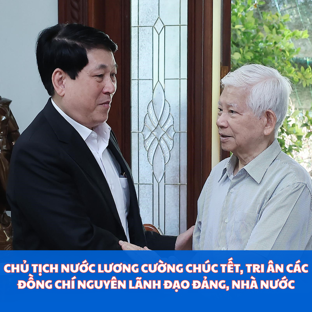 Thăm, chúc Tết nguyên Chủ tịch nước Nguyễn Minh Triết và nguyên Chủ tịch nước Trương Tấn Sang tại nhà riêng, Chủ tịch nước Lương Cường thăm hỏi sức khỏe, cuộc sống gia đình hai đồng chí.