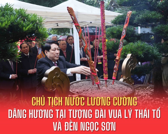 Sáng 8/2 (tức ngày 20 tháng chạp), Chủ tịch nước Lương Cường và Phu nhân cùng đại diện lãnh đạo bộ, ban, ngành Trung ương, thành phố Hà Nội và 100 đại biểu kiều bào tiêu biểu thực hiện nghi lễ dâng hương tại Tượng đài vua Lý Thái Tổ và đền Ngọc Sơn.