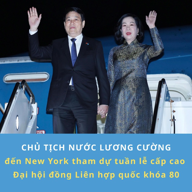 Vào lúc 19h15 ngày 21/9 theo giờ địa phương (sáng 22/9 theo giờ Việt Nam), chuyên cơ chở Chủ tịch nước Lương Cường và Phu nhân, cùng đoàn đại biểu cấp cao Việt Nam đã tới sân bay quốc tế J.F Kennedy, thành phố New York, Hoa Kỳ, tham dự Phiên Thảo luận chung cấp cao Đại hội đồng Liên hợp quốc Khóa 80, kết hợp hoạt động song phương tại Hoa Kỳ.
