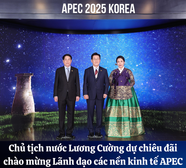 Tối 31/10/2025, tại thành phố Gyeongju (Hàn Quốc), Chủ tịch nước Lương Cường dự chiêu đãi chào mừng Lãnh đạo các nền kinh tế, do Tổng thống Hàn Quốc Lee Jae Myung chủ trì.