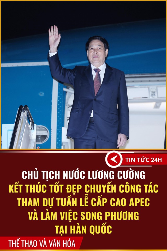 Theo đặc phái viên TTXVN, tối 1/11 (giờ địa phương), Chủ tịch nước Lương Cường cùng đoàn đại biểu cấp cao Việt Nam rời thành phố Busan, kết thúc tốt đẹp chuyến công tác tham dự Tuần lễ Cấp cao Diễn đàn Hợp tác kinh tế châu Á-Thái Bình Dương (APEC) lần thứ 32 tại thành phố Gyeongju và làm việc song phương tại Hàn Quốc theo lời mời của Tổng thống Đại Hàn Dân Quốc Lee Jae Myung từ ngày 29/10 đến 1/11.