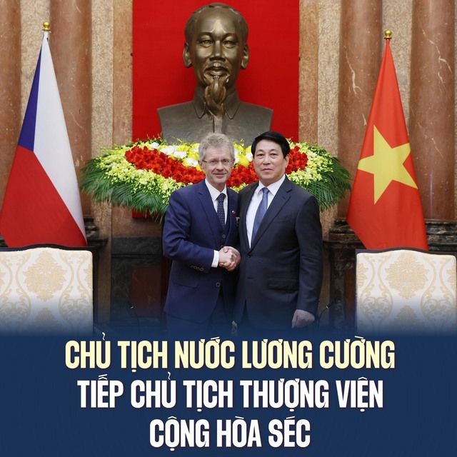 Chủ tịch nước Lương Cường tiếp Chủ tịch Thượng viện Quốc hội Cộng hòa Séc Milos Vystrcil. Ảnh: Lâm Khánh – TTXVN