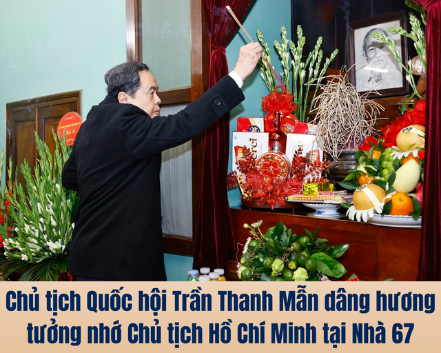 Nhân kỷ niệm 96 năm Ngày thành lập Đảng Cộng sản Việt Nam (3/2/1930 - 3/2/2026) và chuẩn bị đón Tết nguyên đán Bính Ngọ, sáng 9/2, Ủy viên Bộ Chính trị, Bí thư Đảng ủy Quốc hội, Chủ tịch Quốc hội Trần Thanh Mẫn cùng Đoàn đại biểu Ủy ban Thường vụ Quốc hội đã đến dâng hương tưởng nhớ Chủ tịch Hồ Chí Minh tại Nhà 67, Khu Di tích Chủ tịch Hồ Chí Minh trong Phủ Chủ tịch.