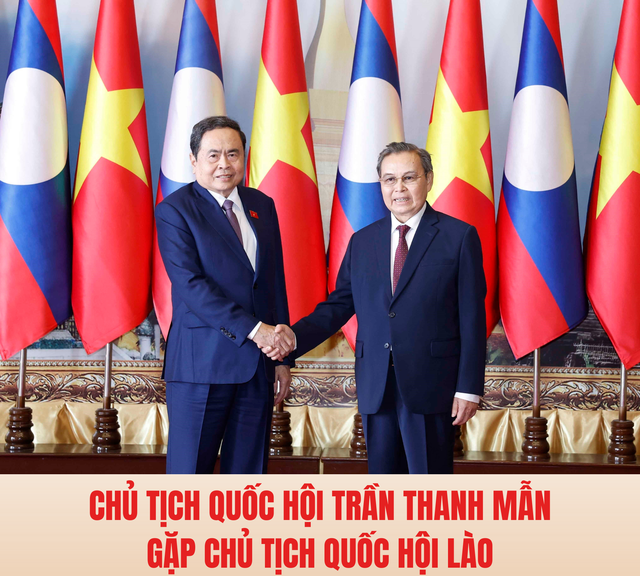 Chiều 5/2/2026, tại Thủ đô Vientiane, Chủ tịch Quốc hội Trần Thanh Mẫn gặp Chủ tịch Quốc hội Lào Saysomphone Phomvihane.
