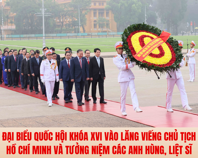 Sáng 6/4/2026, Kỳ họp thứ nhất, Quốc hội khóa XVI khai mạc tại Thủ đô Hà Nội. Trước giờ khai mạc, các đại biểu Quốc hội đến đặt vòng hoa và vào Lăng viếng Chủ tịch Hồ Chí Minh.