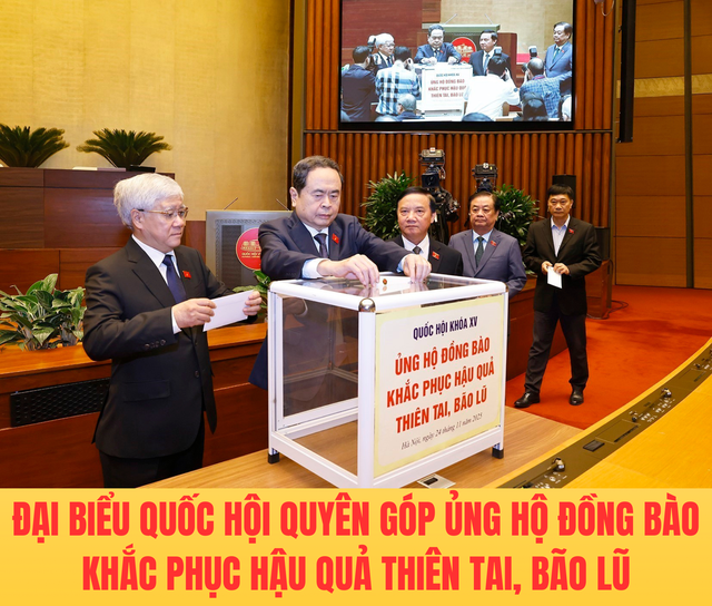 Chia sẻ, đồng cam với các địa phương và nhân dân vùng bị thiên tai, Ủy ban Thường vụ Quốc hội kêu gọi toàn thể các đại biểu Quốc hội, cán bộ, công chức, viên chức, người lao động tại các cơ quan của Quốc hội, Văn phòng Quốc hội ủng hộ tối thiểu một ngày lương để chung tay cùng với nhân dân khắc phục hậu quả bão lũ gây ra. Văn phòng Quốc hội khẩn trương tổng hợp số kinh phí ủng hộ để sớm nhất chuyển đến những nơi bị thiệt hại.