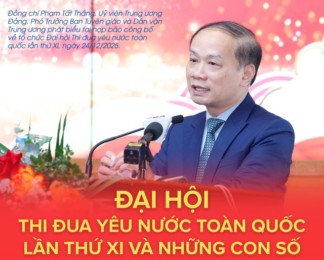 Với chủ đề "Thi đua đổi mới, sáng tạo, tăng tốc bứt phá đưa đất nước vào kỷ nguyên phát triển hùng cường, văn minh, thịnh vượng", Đại hội Thi đua yêu nước toàn quốc lần thứ XI sẽ diễn ra trong 2 ngày 26 và 27/12/2025 tại Trung tâm Hội nghị Quốc gia (Hà Nội).