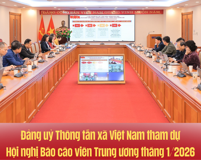 Sáng 28/1/2026, tại Trung tâm Thông tấn Quốc gia (Hà Nội), Đảng uỷ Thông tấn xã Việt Nam tham dự trực tuyến Hội nghị Báo cáo viên Trung ương tháng 1/2026 do Ban Tuyên giáo và Dân vận Trung ương tổ chức.
