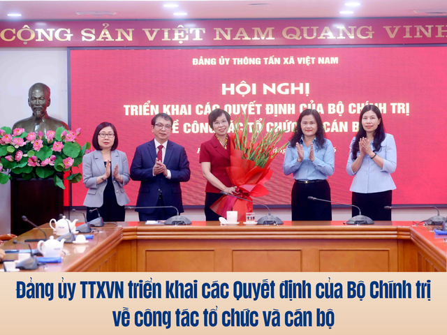 Chiều 1/4/2026, tại Trụ sở Thông tấn quốc gia (5 Lý Thường Kiệt, Hà Nội), Đảng ủy Thông tấn xã Việt Nam tổ chức Hội nghị triển khai các Quyết định của Bộ Chính trị về công tác tổ chức và cán bộ.