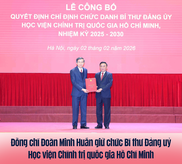 Chiều 2/2, tại Hà Nội, Đảng uỷ Học viện Chính trị quốc gia Hồ Chí Minh tổ chức Lễ công bố Quyết định của Ban Thường vụ Đảng uỷ các cơ quan Đảng Trung ương về việc chỉ định chức danh Bí thư Đảng uỷ Học viện Chính trị quốc gia Hồ Chí Minh, nhiệm kỳ 2025-2030.