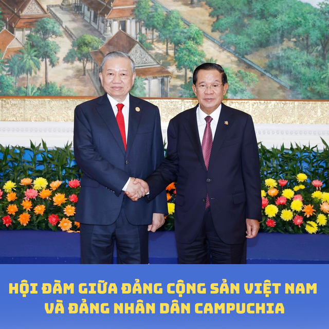 Sáng 6/2/2026, Thủ đô Phnom Penh, Tổng Bí thư Tô Lâm và Chủ tịch Đảng Nhân dân Campuchia Hun Sen đồng chủ trì Hội đàm song phương giữa Đảng Cộng sản Việt Nam và Đảng Nhân dân Campuchia.
