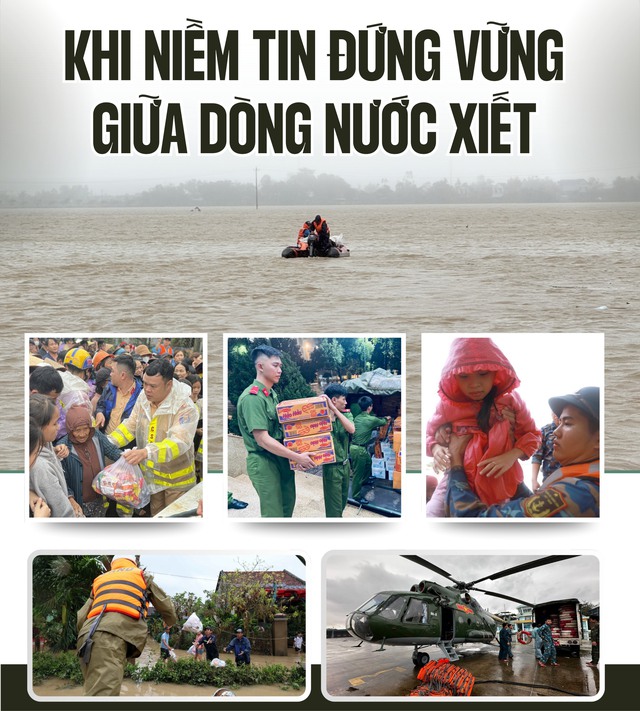 Trong sắc nước đục ngầu, là những bàn tay níu lấy nhau vượt qua dòng chảy hung dữ; là những chiến sĩ trẻ lạnh cóng nửa người để cõng các cụ già, bế từng em nhỏ; là những xuồng cứu hộ rẽ sóng lao thẳng vào tâm lũ; là ánh đèn pin lay lắt trong mưa gió nhưng chưa bao giờ tắt.