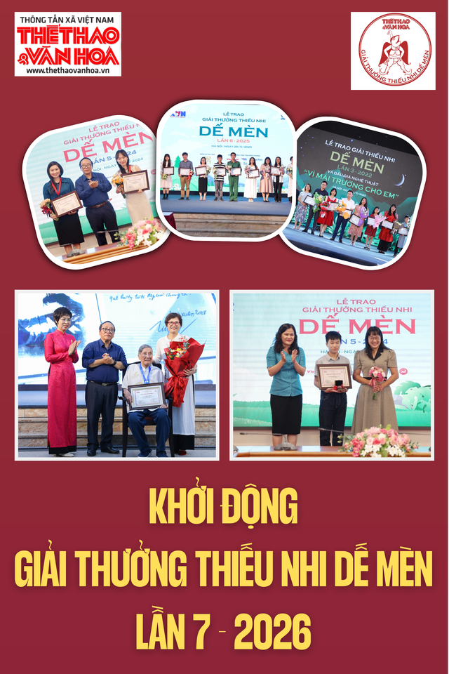 Ngày 26/3/2026, Ban tổ chức Giải thưởng Thiếu nhi Dế Mèn thuộc Báo Thể thao và Văn hóa (Thông tấn xã Việt Nam) chính thức phát động mùa giải thứ 7 năm 2026.