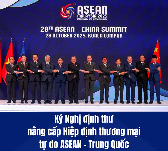 Theo thông tin từ Bộ Công Thương, sáng 28/10, trong khuôn khổ Hội nghị Cấp cao ASEAN lần thứ 47 và các Hội nghị Cấp cao liên quan đã diễn ra Lễ ký Nghị định thư nâng cấp Hiệp định Thương mại tự do ASEAN - Trung Quốc (ACFTA 3.0) tại Trung tâm Hội nghị Kuala Lumpur, Malaysia, với sự chứng kiến của lãnh đạo cấp cao các nước ASEAN và Trung Quốc.