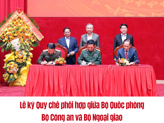 Chiều 6/12, tại Hà Nội, Bộ Công an phối hợp Bộ Quốc phòng và Bộ Ngoại giao tổ chức Lễ ký Quy chế phối hợp công tác giữa ba Bộ. Tổng Bí thư Tô Lâm, Chủ tịch nước Lương Cường và Thủ tướng Phạm Minh Chính dự Lễ ký.