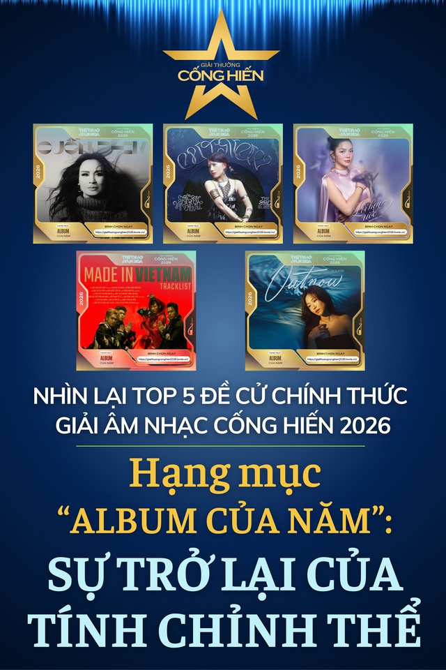 Nhìn bao quát Top 5 "Album của năm" tại Giải Âm nhạc Cống hiến 2026, giới quan sát hoàn toàn có quyền lạc quan về một thị trường âm nhạc đang phát triển theo chiều sâu.
