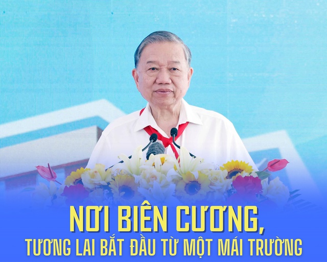 Phát biểu tại lễ khánh thành, Tổng Bí thư một lần nữa khẳng định giáo dục là quốc sách hàng đầu, là nền tảng để phát triển đất nước nhanh và bền vững. Đối với các địa bàn biên giới, giáo dục không chỉ là nâng cao dân trí, đào tạo nguồn nhân lực, mà còn là giải pháp căn cơ, lâu dài để giữ vững chủ quyền quốc gia từ gốc rễ – đó là con người, là cộng đồng dân cư gắn bó với đất đai, bản làng, đường biên, cột mốc.