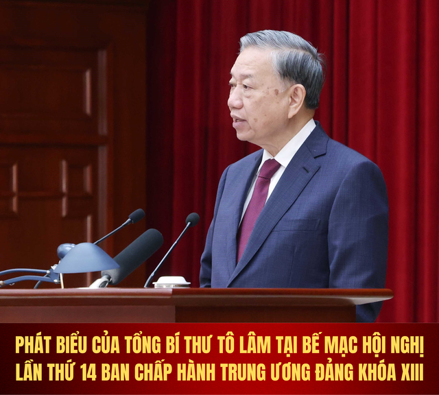 Tổng Bí thư Tô Lâm phát biểu bế mạc Hội nghị lần thứ 14 Ban Chấp hành Trung ương Đảng khóa XIII. Ảnh: Thống Nhất - TTXVN