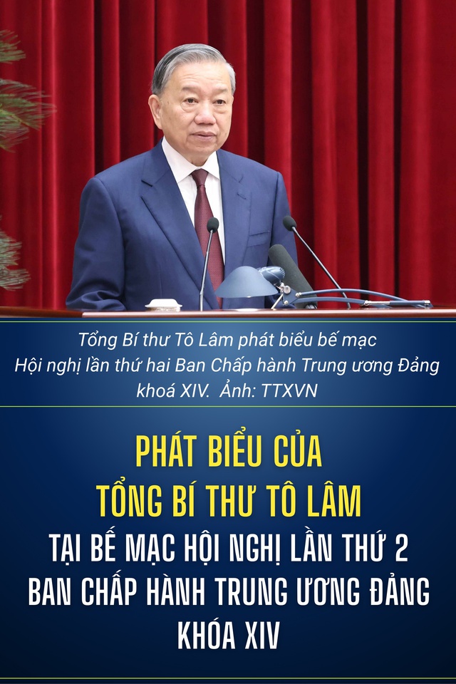 Tổng Bí thư Tô Lâm phát biểu bế mạc Hội nghị lần thứ hai Ban Chấp hành Trung ương Đảng khoá XIV. Ảnh: Doãn Tấn - TTXVN
