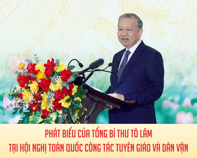 Hôm nay, tôi cùng các đồng chí Bộ Chính trị, Ban Bí thư, lãnh đạo các cơ quan Trung ương vui mừng đến dự "Hội nghị toàn quốc tổng kết công tác Tuyên giáo và Dân vận của Đảng năm 2025, triển khai nhiệm vụ năm 2026" - Hội nghị tổng kết công tác năm đầu tiên sau khi hợp nhất Ban Tuyên giáo Trung ương và Ban Dân vận Trung ương, cơ quan tham mưu chiến lược về công tác Tuyên giáo và Dân vận của Đảng. Đặc biệt, hội nghị hôm nay diễn ra vào thời điểm toàn Đảng, toàn dân và toàn quân đang nỗ lực hoàn thành các chỉ tiêu, mục tiêu nhiệm kỳ của Đại hội XIII, tiếp tục hoàn thành tốt công tác chuẩn bị tổ chức Đại hội Đại biểu toàn quốc lần thứ XIV của Đảng.