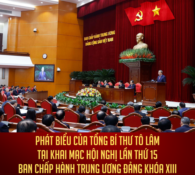 Tổng Bí thư Tô Lâm phát biểu khai mạc Hội nghị lần thứ 15 Ban Chấp hành Trung ương Đảng khóa XIII. Ảnh: Doãn Tấn - TTXVN