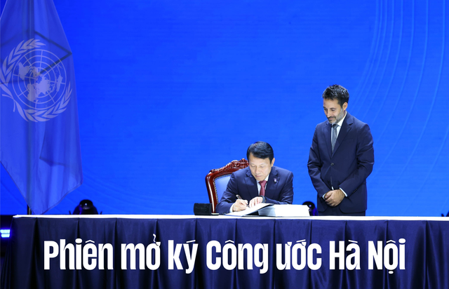 Sáng 25/10/2025, tại Trung tâm Hội nghị Quốc gia (Hà Nội), sau Phiên khai mạc Lễ mở ký và Hội nghị cấp cao Công ước của Liên hợp quốc về chống tội phạm mạng (Công ước Hà Nội), các Trưởng đoàn tiến hành ký Công ước của Liên hợp quốc về Chống tội phạm mạng.