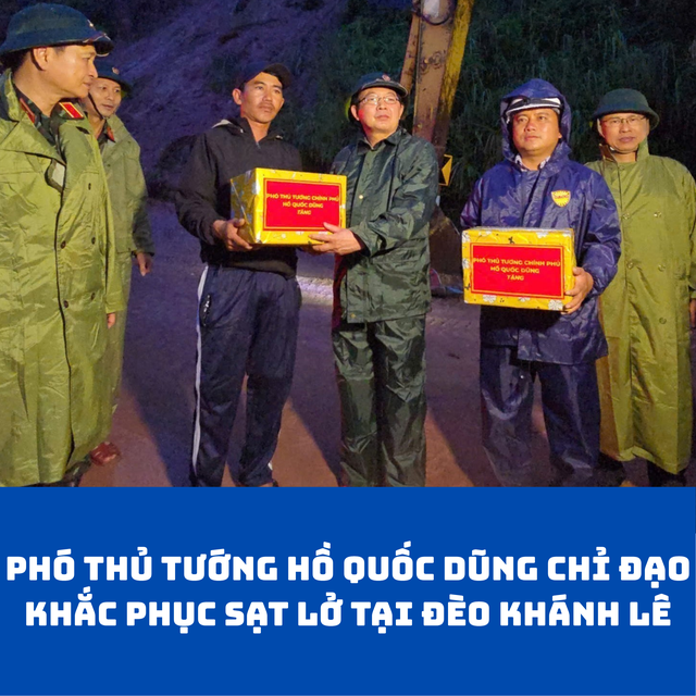 Chiều tối 18/11, Phó Thủ tướng Chính phủ Hồ Quốc Dũng cùng đoàn công tác của Chính phủ và tỉnh Khánh Hòa trực tiếp đến hiện trường chỉ đạo khắc phục hậu quả sạt lở tại đèo Khánh Lê (Quốc lộ 27C, xã Nam Khánh Vĩnh, tỉnh Khánh Hòa).