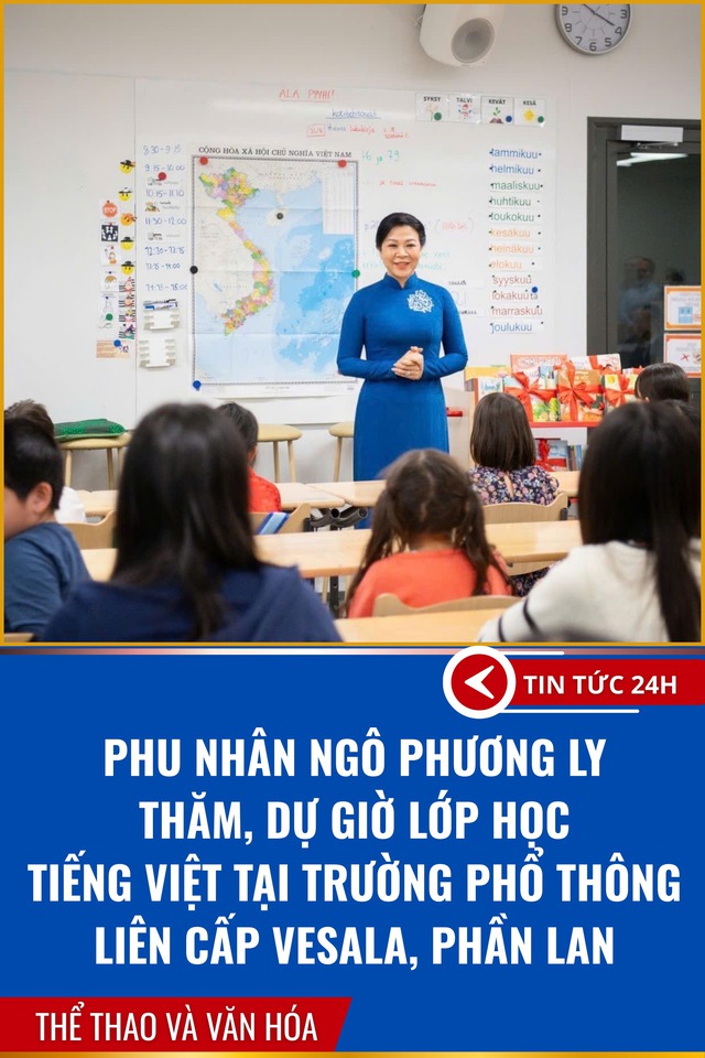 Trong khuôn khổ chuyến thăm chính thức Cộng hòa Phần Lan của Tổng Bí thư Tô Lâm và Phu nhân, chiều ngày 21/10/2025, tại Helsinki, Phu nhân Ngô Phương Ly đến thăm, dự giờ lớp học tiếng Việt tại Trường phổ thông liên cấp Vesala, thành phố Helsinki.