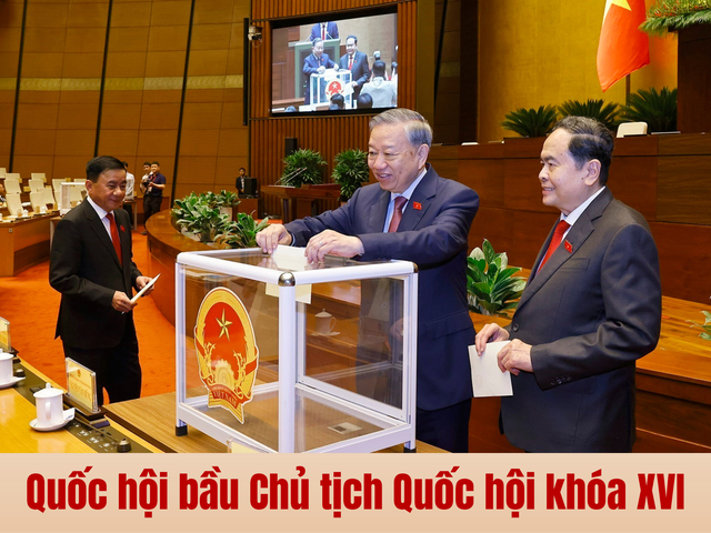 Tổng Bí thư Tô Lâm cùng các đại biểu Quốc hội bỏ phiếu bầu Chủ tịch Quốc hội khoá XVI. Ảnh: Doãn Tấn - TTXVN