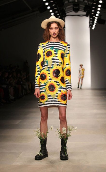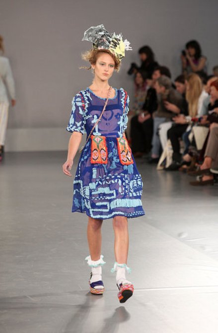 Chiếc mũ hài hước kết hợp cùng bộ váy không kém phần thú vị và đôi tất xù ấn tượng của nhãn hiệu Louise Gray