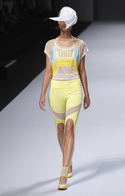 Những thiết kế với đường cắt ấn tượng trên quần Leggings và mũ mang thương hiệu Issey Miyake.