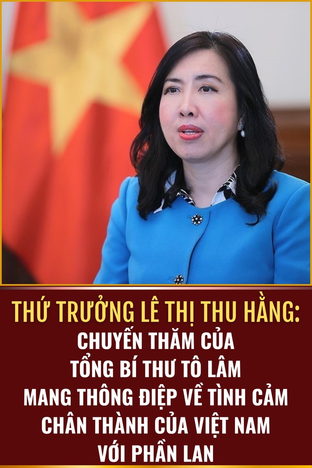- Thứ trưởng Lê Thị Thu Hằng: Nhận lời mời của Tổng thống Phần Lan Alexander Stubb, Tổng Bí thư Tô Lâm và Phu nhân cùng đoàn đại biểu cấp cao Việt Nam sẽ thăm chính thức Cộng hòa Phần Lan từ ngày 20 đến 22/10/2025. Đây là chuyến thăm đầu tiên của một Tổng Bí thư Đảng Cộng sản Việt Nam đến Phần Lan kể từ khi hai nước thiết lập quan hệ ngoại giao vào năm 1973.