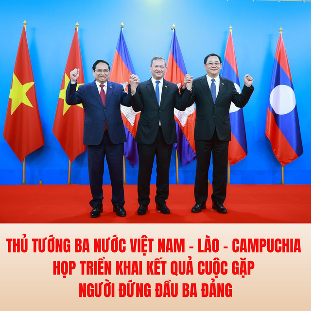 Ba Thủ tướng vui mừng trước sự phát triển mạnh mẽ, thực chất của hợp tác giữa ba nước thời gian qua, góp phần củng cố và làm sâu sắc hơn nữa mối quan hệ hữu nghị truyền thống, đoàn kết đặc biệt và hợp tác toàn diện Việt Nam - Campuchia - Lào; nhấn mạnh tầm quan trọng chiến lược của tình cảm gắn bó, tin cậy chính trị và đoàn kết giữa ba nước; nhất trí tiếp tục tăng cường giao lưu, tập huấn thanh niên, lãnh đạo trẻ và đẩy mạnh tuyên truyền sâu rộng tới các tầng lớp nhân dân, nhất là thế hệ trẻ, về ý nghĩa lịch sử và giá trị to lớn của quan hệ hợp tác ba nước, nhất là trong dịp kỷ niệm 70 năm quan hệ Campuchia - Lào (15/6/1956 - 15/6/2026); 65 năm quan hệ Việt Nam - Lào (5/9/1962 - 5/9/2027) và 60 năm quan hệ Việt Nam - Campuchia (24/6/1967 - 24/6/2027).