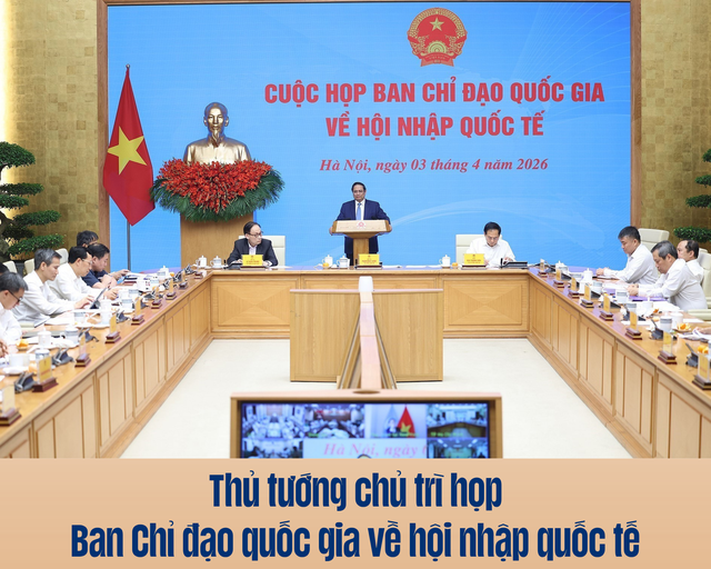 Chiều 3/4/2026, tại Hà Nội, Thủ tướng Phạm Minh Chính, Trưởng Ban Chỉ đạo quốc gia về hội nhập quốc tế chủ trì phiên họp của Ban Chỉ đạo.