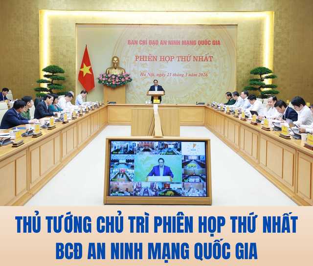Sáng 21/3, Thủ tướng Chính phủ Phạm Minh Chính, Trưởng Ban Chỉ đạo An ninh mạng quốc gia (Ban Chỉ đạo) chủ trì Phiên họp thứ I năm 2026 của Ban Chỉ đạo để đánh giá tình hình, kết quả hoạt động của Ban Chỉ đạo; đưa ra các phương hướng, nhiệm vụ, giải pháp trọng tâm trong thời gian tới nhằm đảm bảo an ninh mạng quốc gia, bảo vệ an toàn các hoạt động của cơ quan Nhà nước và nhân dân.