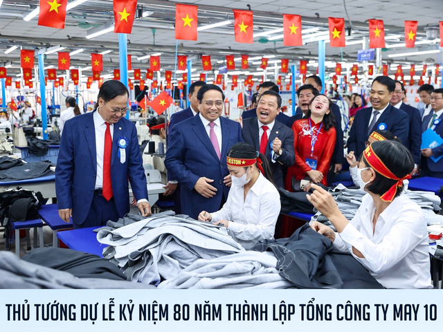 Thay mặt lãnh đạo Đảng, Nhà nước trao Huân chương Lao động hạng Nhất của Đảng, Nhà nước tặng Tổng Công ty May 10 và Huân chương Lao động hạng Ba tặng các cá nhân xuất sắc của May 10; phát biểu tại sự kiện, thay mặt Tổng Bí thư Tô Lâm gửi tới Lễ kỷ niệm lời chúc tốt đẹp nhất, Thủ tướng Chính phủ Phạm Minh Chính nhấn mạnh, nhìn lại chặng đường 80 năm phát triển đất nước, từ một nước nghèo nàn, lạc hậu sau chiến tranh, Việt Nam đã vươn mình mạnh mẽ, đạt mức tăng trưởng GDP 8,02% năm 2025, vượt xa các dự báo đầu năm; GDP bình quân đầu người đạt 5.026 USD, chính thức vượt ngưỡng 5.000 USD, đưa quốc gia bước vào nhóm thu nhập trung bình cao.