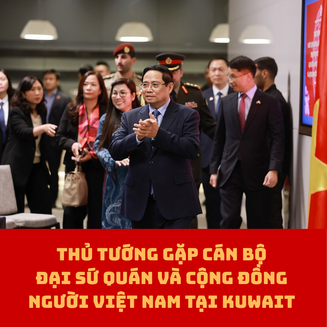 Nhân chuyến thăm chính thức Nhà nước Kuwait, chiều 16/11/2025 (giờ địa phương), Thủ tướng Phạm Minh Chính và Phu nhân gặp cán bộ Đại sứ quán và cộng đồng người Việt Nam tại Kuwait.