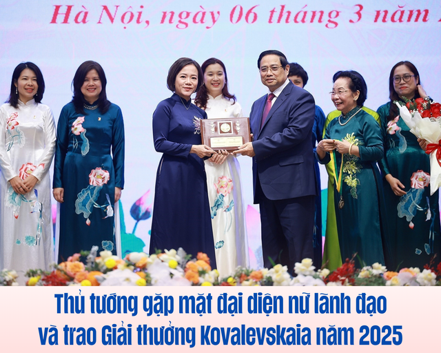 Nhân kỷ niệm 116 năm Ngày Quốc tế phụ nữ 8/3, kỷ niệm 1986 năm Khởi nghĩa Hai Bà Trưng, sáng 6/3, tại Trụ sở Chính phủ, Thủ tướng Chính phủ Phạm Minh Chính gặp mặt nữ lãnh đạo, quản lý các cơ quan Trung ương và trao Giải thưởng Kovalevskaia năm 2025.