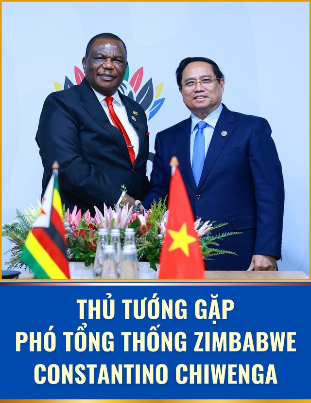 Nhân chuyến tham dự Hội nghị Thượng đỉnh G20 tại Nam Phi, chiều 22/11/2025 (giờ địa phương), Thủ tướng Phạm Minh Chính gặp Phó Tổng thống Zimbabwe Constantino Chiwenga.